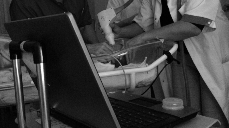 Vandaag krijg je je oog onderzoek.. Een dokter zet een klem op je oog en maakt daarna met een camera in de vorm van een pistool allerlei foto's.. Alles ziet er goed uit, over anderhalf jaar nog eens opnieuw!