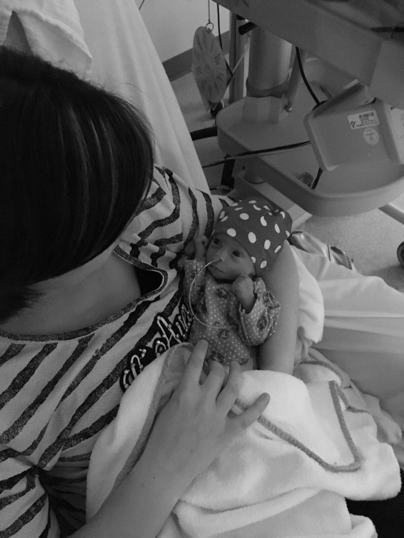 Toen ze haar verzorgd hadden reden ze een couveuse naast het bed in de OK, met een ieniemienie meisje daarin met heel veel toeters en bellen! Yara werd naar de IC gebracht op de afdeling Neonatologie. Ik werd gehecht en werd naar de uitslaapkamer gebracht, ik werd overwelmd door alles wat er gebeurd was dus ging de zuster Mark halen. Daarna zijn we samen naar Yara gaan kijken.
